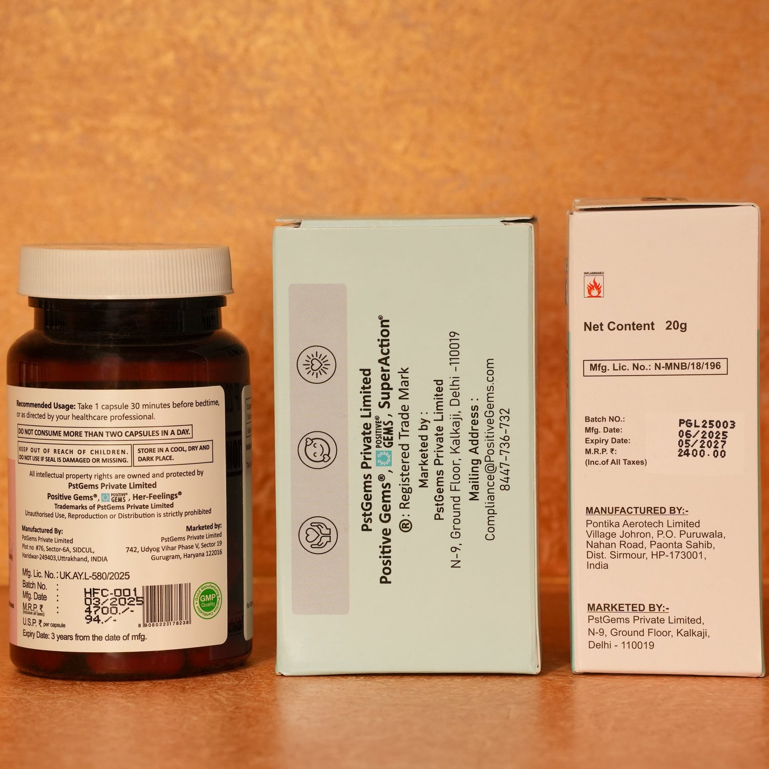 Combo Pack of 50 Pills of SuperAction Tadalafil Tablets IP 20mg, Long-Time Lidocaine & Prilocaine Spray IP 10% 20gm, Her-Feelings Ayurvedic Proprietary Medicine 50 capsules